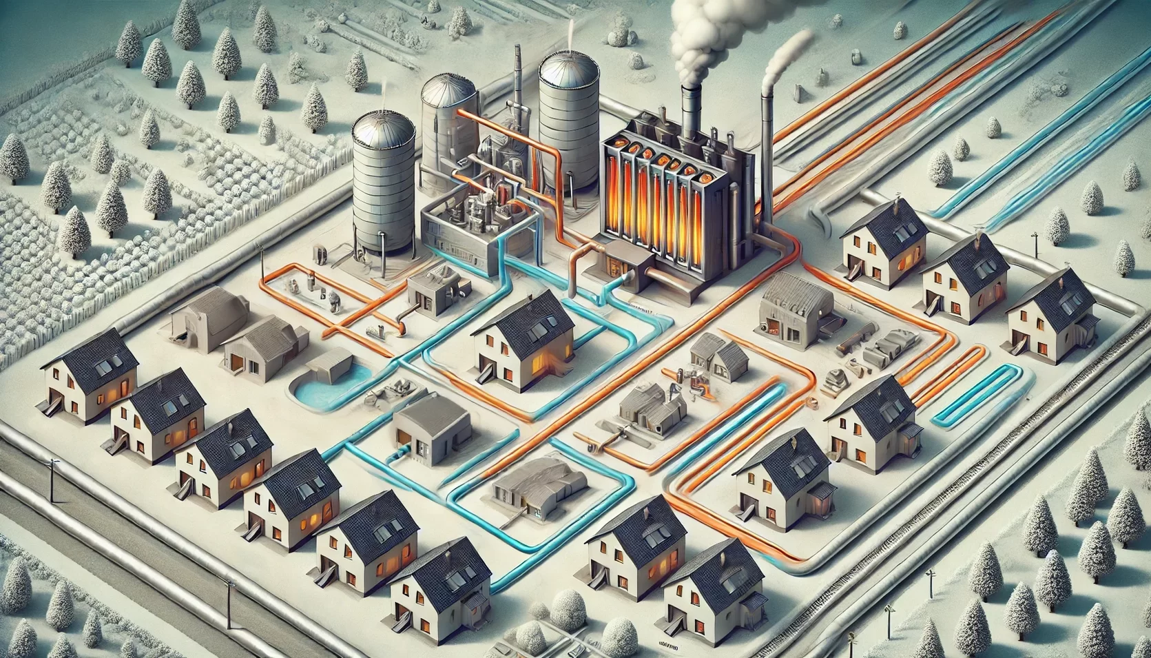 Ein Fernwärmesystem besteht aus verschiedenen Komponenten, wie: