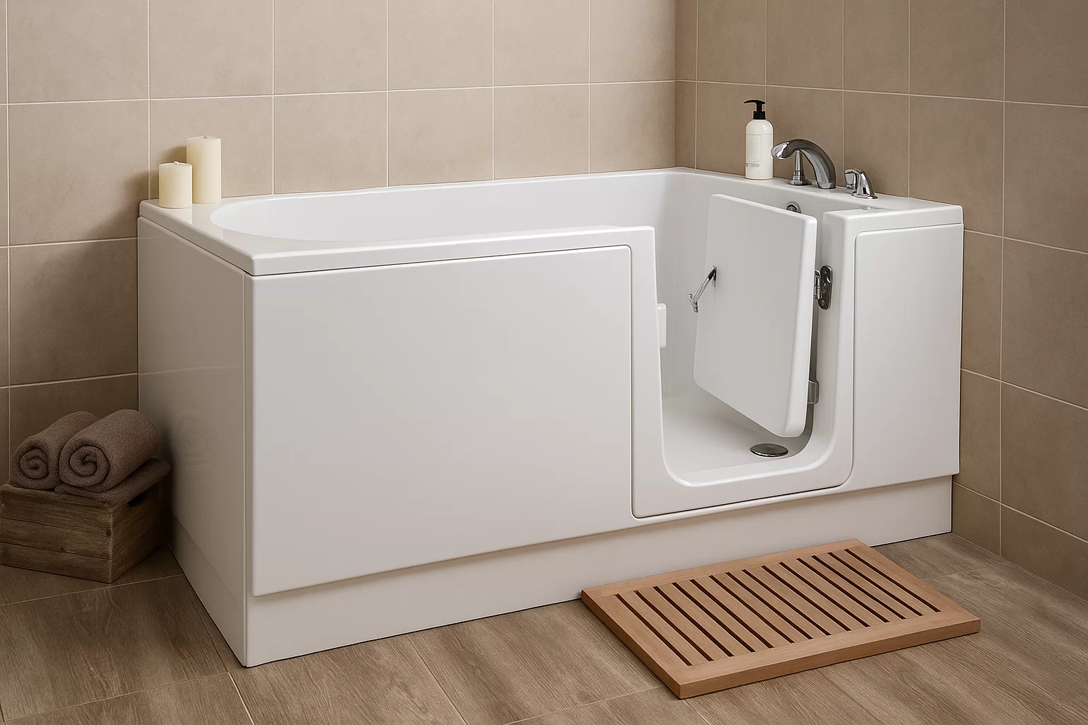 Begehbare Badewannen bieten sicheren Zugang und Unabhängigkeit im Badezimmer für Personen mit eingeschränkter Mobilität, wie Senioren oder Menschen mit Behinderungen.