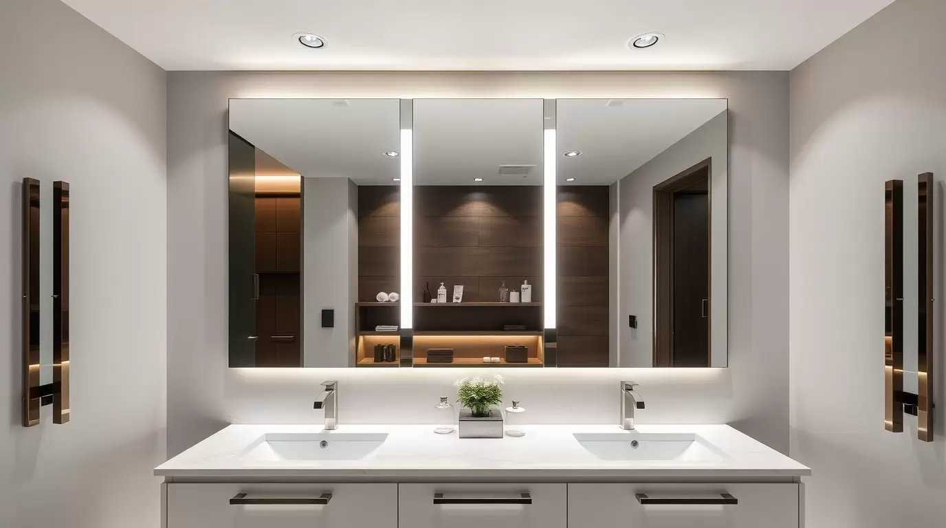 In Badezimmern ohne Fenster sind Spiegelschränke mit integrierter Beleuchtung besonders hilfreich, da sie nicht nur für eine bessere Sicht sorgen, sondern auch die Helligkeit des Raums verbessern.